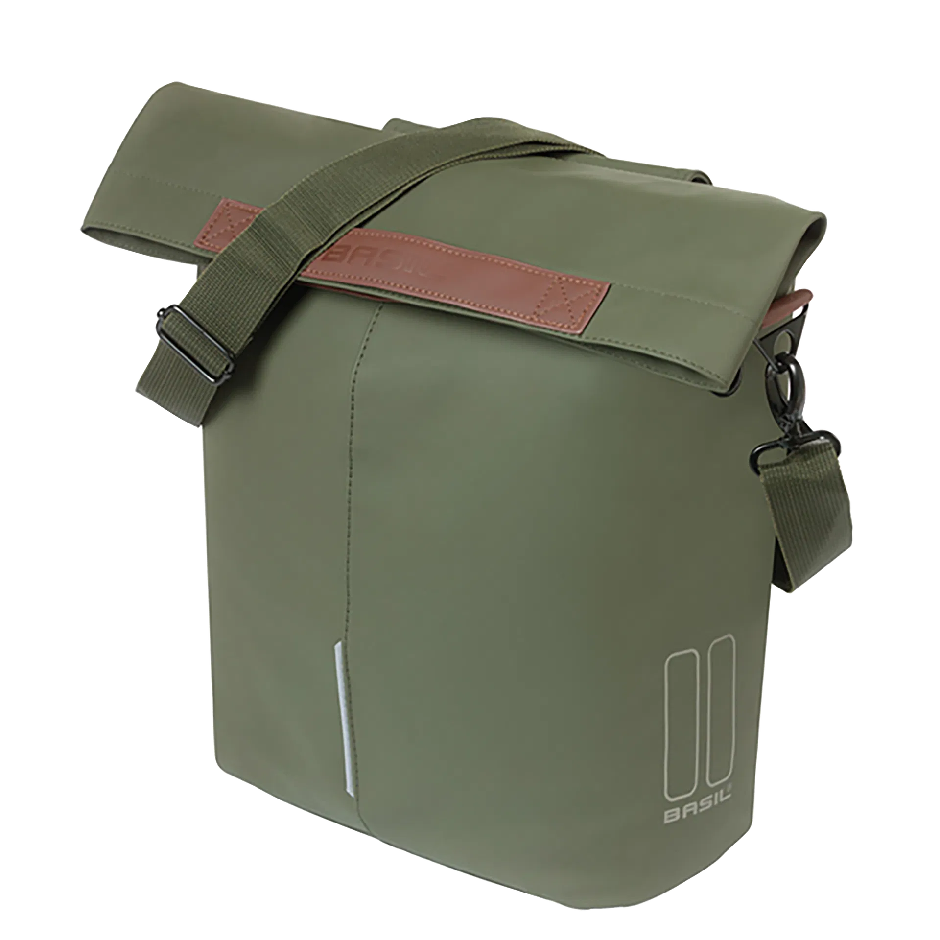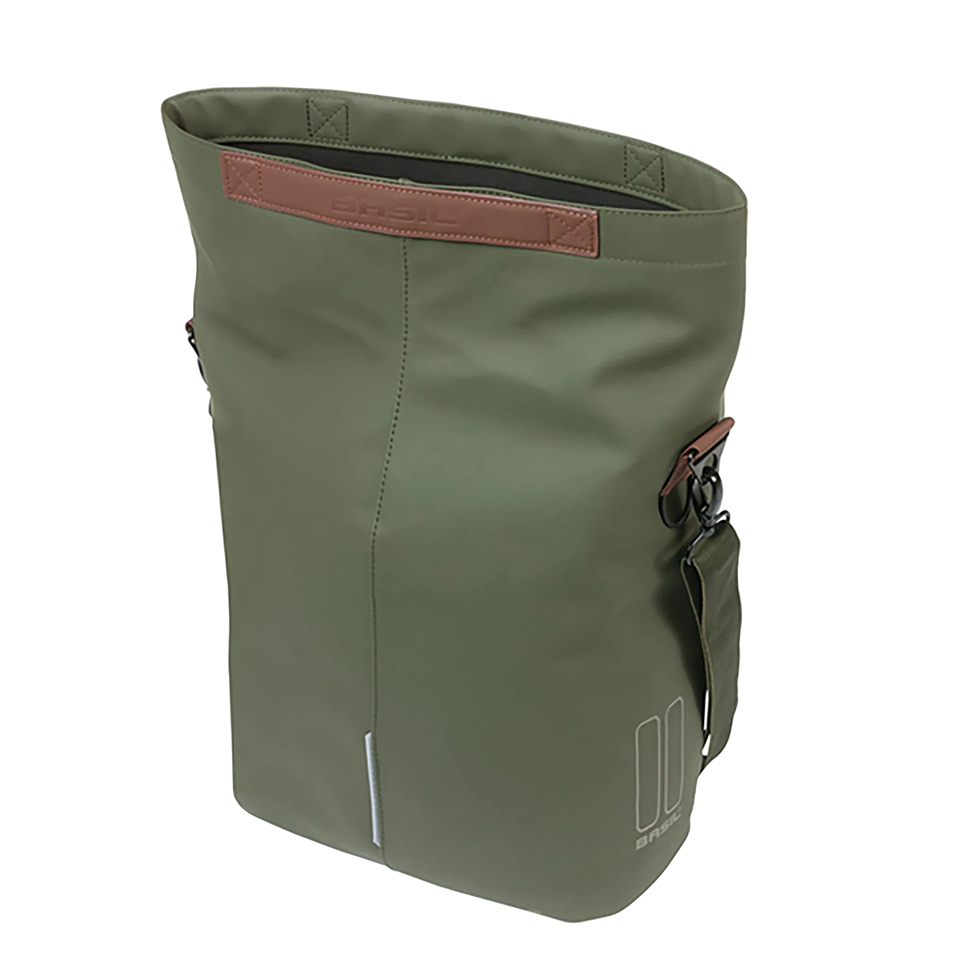 Der Basil City Shopper: Der Fahrrad-Shopper passt ideal zum schnellen Tempo der Stadt. Arbeit, Freunde, Feiern, auf den Markt gehen oder nach einer Yogastunde mal ganz du selbst sein. Der Shopper ist nicht zu schwer und nicht zu groß, aber bietet viel Platz (mit großartigen 14 – 16 Litern Inhalt) und ist stabil genug, um einige Einkäufe oder Sonstiges darin mitzunehmen. Der magnetische, wasserabwehrende Faltverschluss verhindert, dass Wasser in die Tasche gelangt. Mit MIK-Hooks lässt sich die Fahrradtasche mit einer Handbewegung sicher am Gepäckträger befestigen – und genauso einfach wieder abnehmen. Die Tasche kannst du auch einfach mit dem abnehmbaren Schulterriemen lässig über die Schulter hängen. An den Griffen aus veganem Leder lässt sich die Tasche angenehm tragen. Die Tasche hat ein Innenfach mit Reißverschluss und die integrierte Option zur Befestigung einer LED-Beleuchtung.
